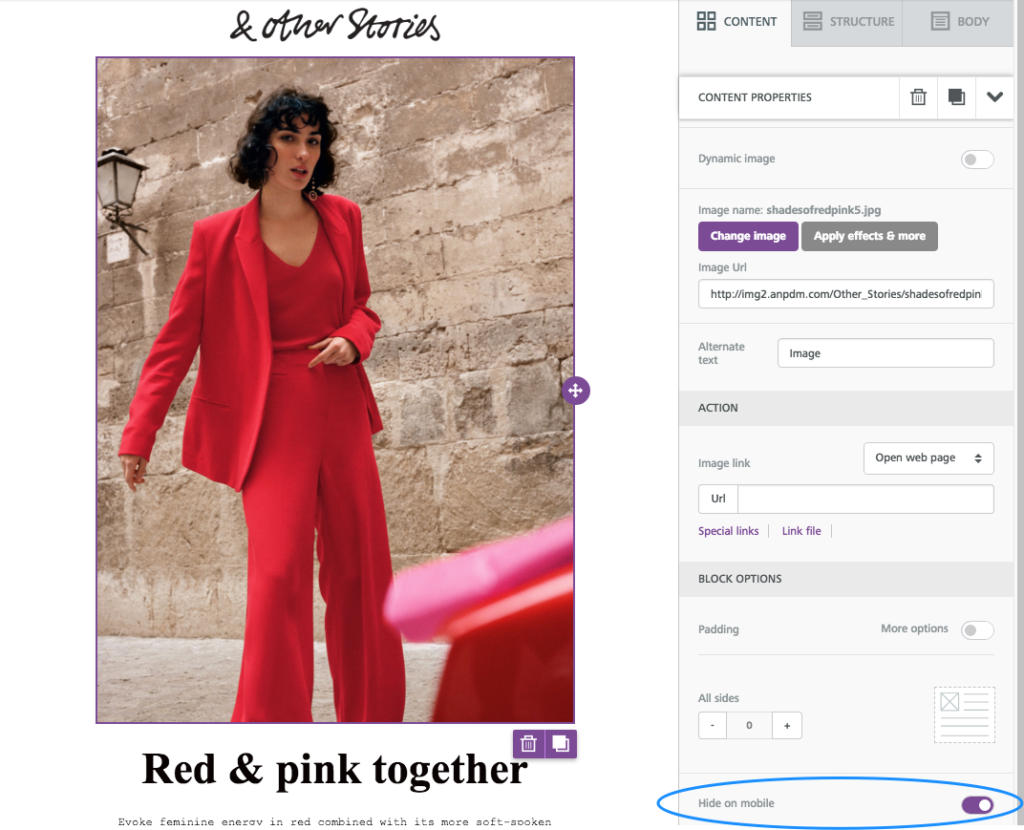 - La posibilidad de activar la función Hide on y ocultar en el celular ciertos elementos de las páginas de destino, para garantizar un diseño aún más receptivo.