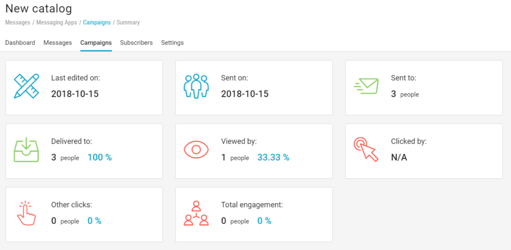 Como para todos los demás canales de la plataforma MailUp, también para Apps de mensajería puede contar con un sistema de informes que te permitirá conocer en detalle los resultados de tus campañas de Messenger y Telegram.