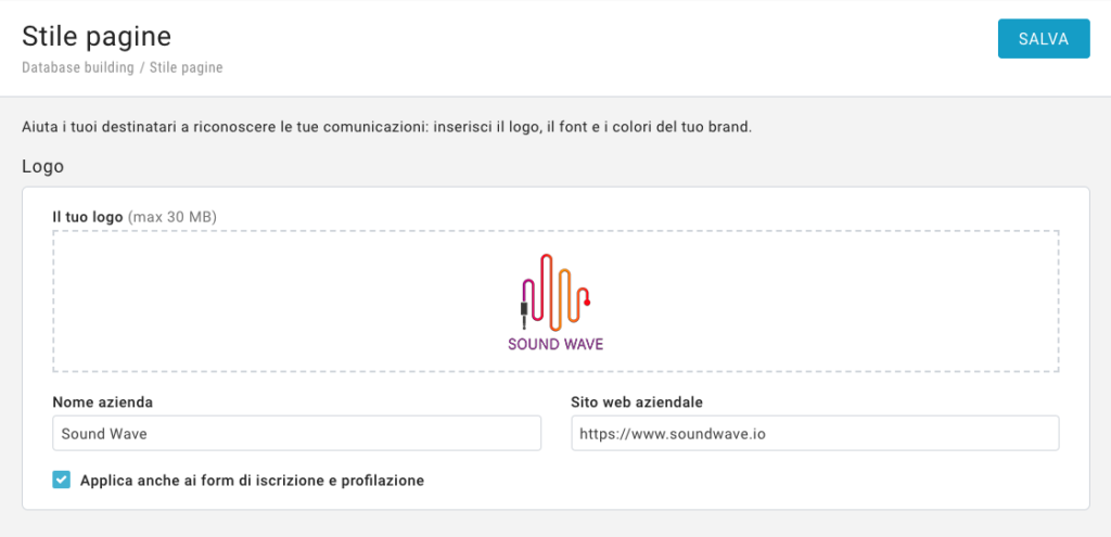 ¿Y si quisieras usar ese mismo diseño en los formularios de registro? Solo tienes que marcar la casilla que encontrarás en la página y seleccionar el estilo personalizado en el momento de crear el formulario. Esto se refleja en forma de uniformidad gráfica de las comunicaciones.