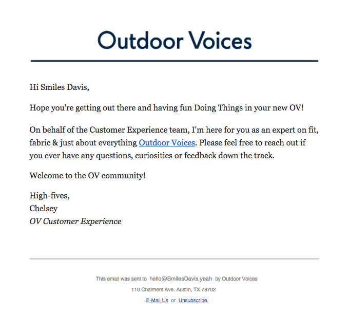 Puedes introducir los enlaces a tus recursos de asistencia en tus e-mail de incorporación (onboarding) reservados a los nuevos clientes o bien puedes sugerir las modalidades de uso de un producto tuyo en un e-mail de confirmación de pedido o de confirmación de registro, después de que el cliente haya finalizado la compra: