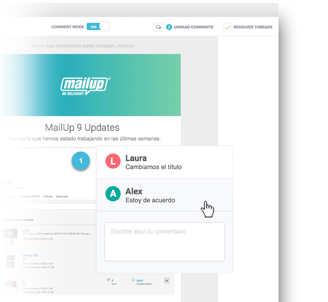 Quien tenga experiencia en el proceso de creación de una campaña de email, lo sabe: son infinitos los intercambios de opiniones, cambios y comentarios entre todos los miembros del equipo, antes de llegar a la aprobación definitiva. Esto es válido para los equipos de empresa y, todavía más, para los flujos entre agencias y clientes, que implican llamadas telefónicas, intercambios de email, teleconferencias.