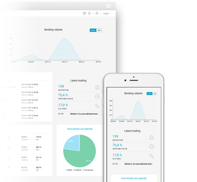 Damos la bienvenida a MailUp 9, la nueva versión de la plataforma # 1 en Italia para el marketing por email y SMS. Completamente rediseñada, hace todavía más fácil y potente la creación, envío y seguimiento de las campañas de e-mail y SMS.