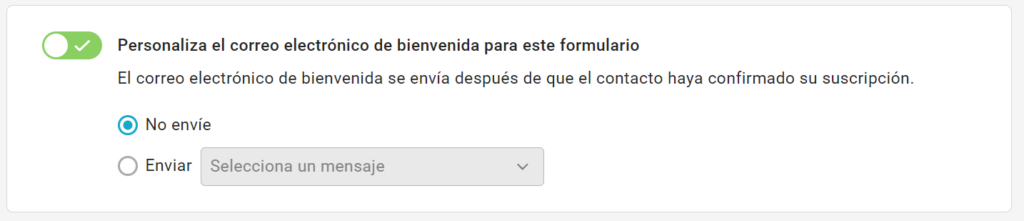 En una fase tan crucial como la postsuscripción, se vuelve esencial personalizar la primera experiencia del usuario con tu marca. ¿Cómo? Al asociar mensajes postsuscripción, correos electrónicos de confirmación y correos electrónicos de bienvenida diferentes dependiendo del formulario de suscripción creado por el embudo de suscripción activado y relacionado con ese formulario.