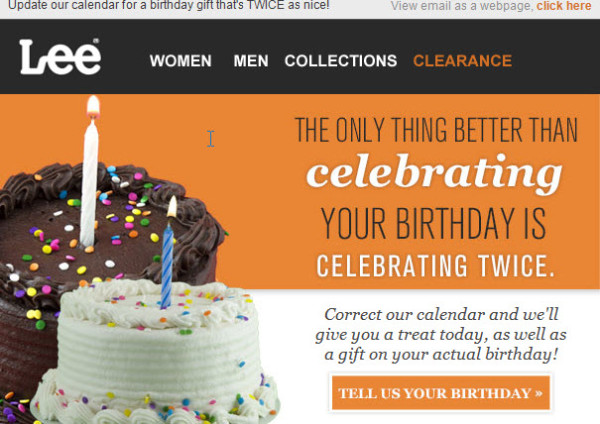 Puede parecer elemental, pero es ya un enorme paso adelante con respecto a lo que ponen en práctica la mayor parte de los negocios: enviar un e-mail sencillo y de contenido emocional para felicitar el cumpleaños complacerá al usuario y le arrancará una sonrisa. Así lo hace Facebook, por ejemplo. El mensaje tiene un toque cálido y personal, y recuerda el estilo de las notas escritas y firmadas a mano – y en efecto está escrito en nombre del equipo de Facebook, no de la empresa como tal.