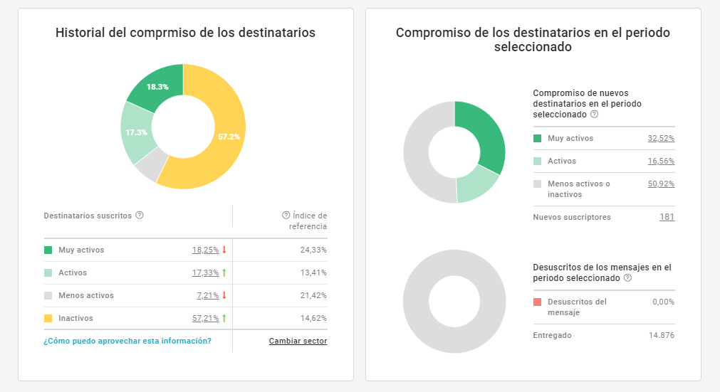 - Compromiso de los destinatarios en el periodo seleccionado.