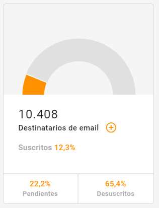 - Total de destinatarios suscritos al canal y porcentaje de destinatarios suscritos y no suscritos en comparación con el total.