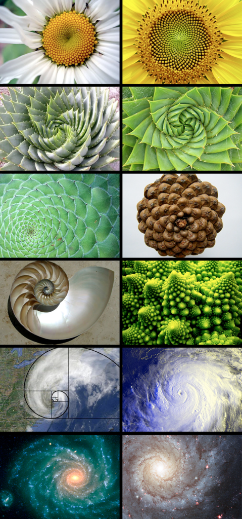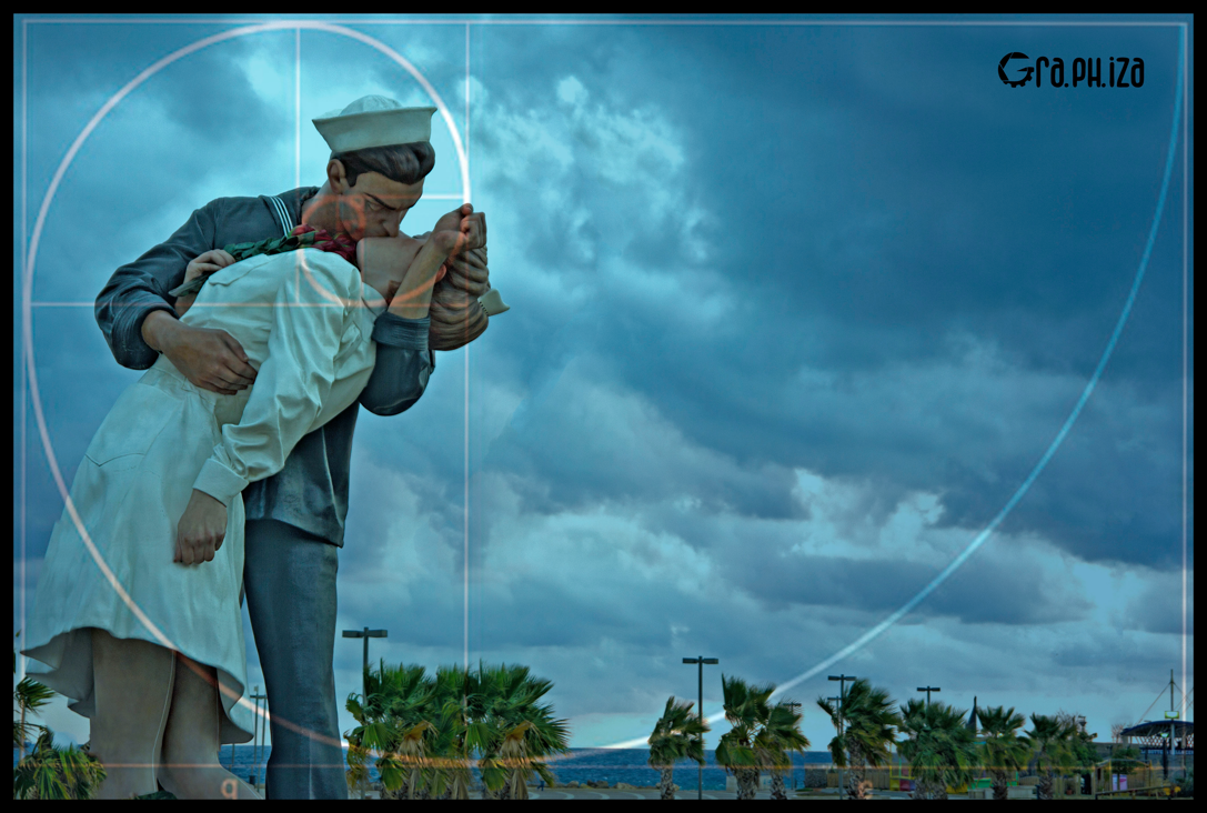 La segunda es la sección áurea (o regla de los tercios), que representa una expresión recurrente en la naturaleza y que se desarrolla conforme a la secuencia de Fibonacci, comúnmente denominada espiral de caracol.