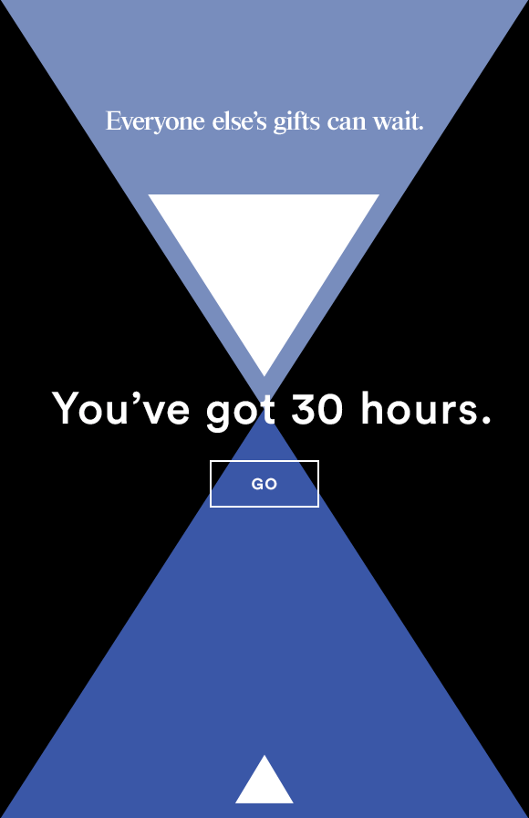 Fíjate en este inteligente GIF de Ann Taylor. La animación se desdobla como un reloj de arena y como flechas que apuntan siempre directamente al botón de CTA «IR»: