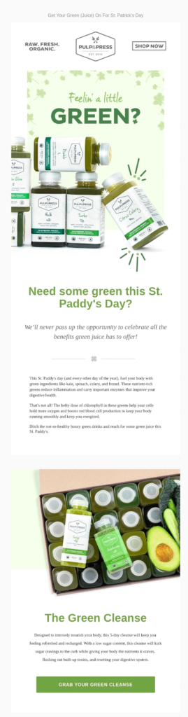 Las jornadas mundiales dedicadas a un determinado tema son solo un ejemplo. El día de la madre, el día del padre, San Patricio, Pascua, el mes del orgullo gay, Halloween, San Valentín: la lista de ocasiones que se pueden aprovechar con campañas de de e-mail temáticas y promociones expresamente dedicadas es larga y encontrar la festividad que mejor se adapte a tu negocio y a tus fines es sin duda fácil.