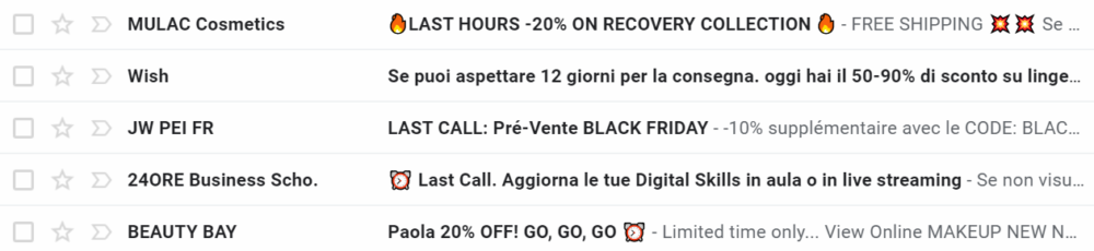 - utiliza el potencial visual del emoji para crear un objeto que hace que su correo electrónico se destaque en la bandeja de entrada, siempre prestando atención a su compatibilidad en diferentes dispositivos móviles y clientes de correo electrónico