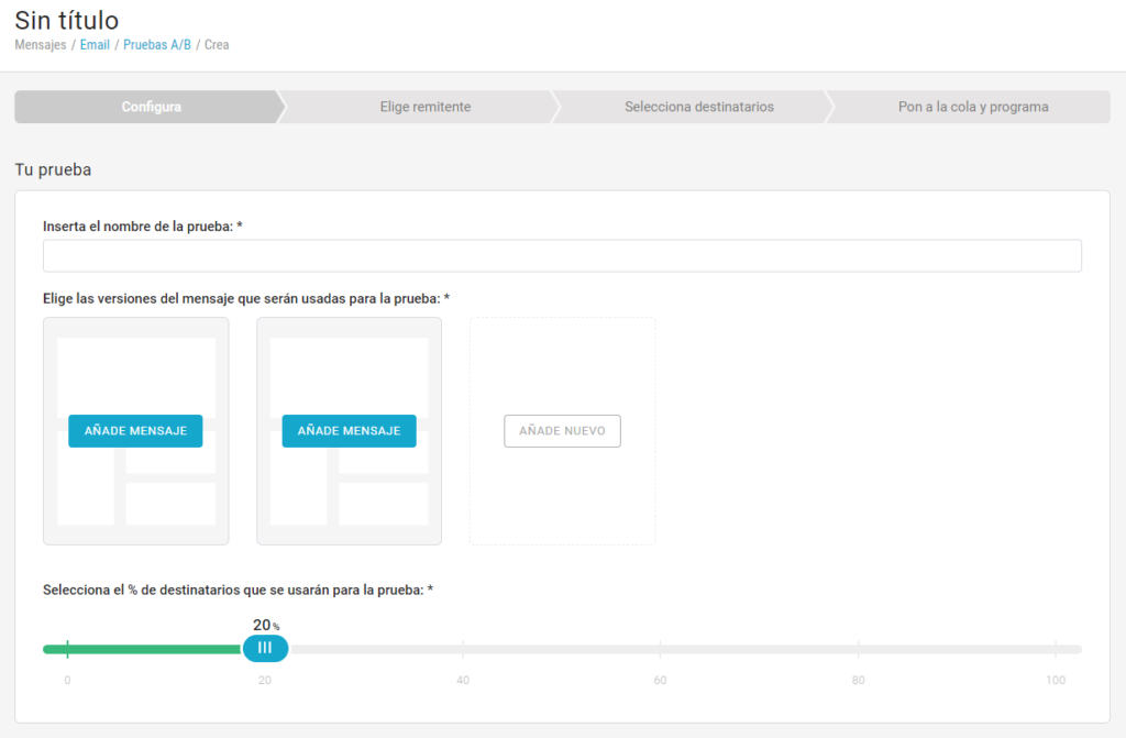 - Un botón deslizante para seleccionar la extensión del segmento de destinatarios a los que se va a enviar el test
