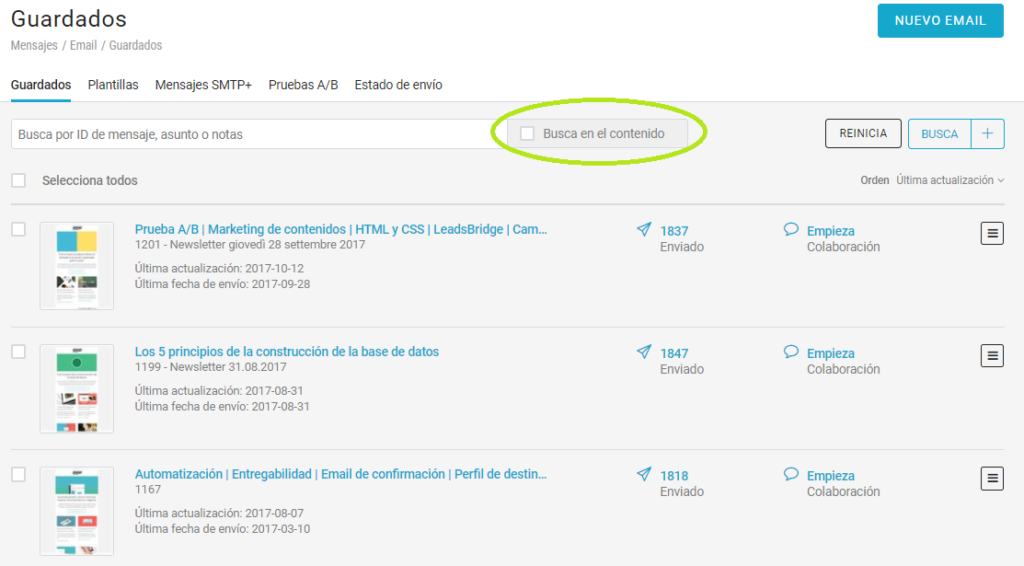 - Seleccionar los mensajes que ya están en cola de envío para efectuar una prueba A/B