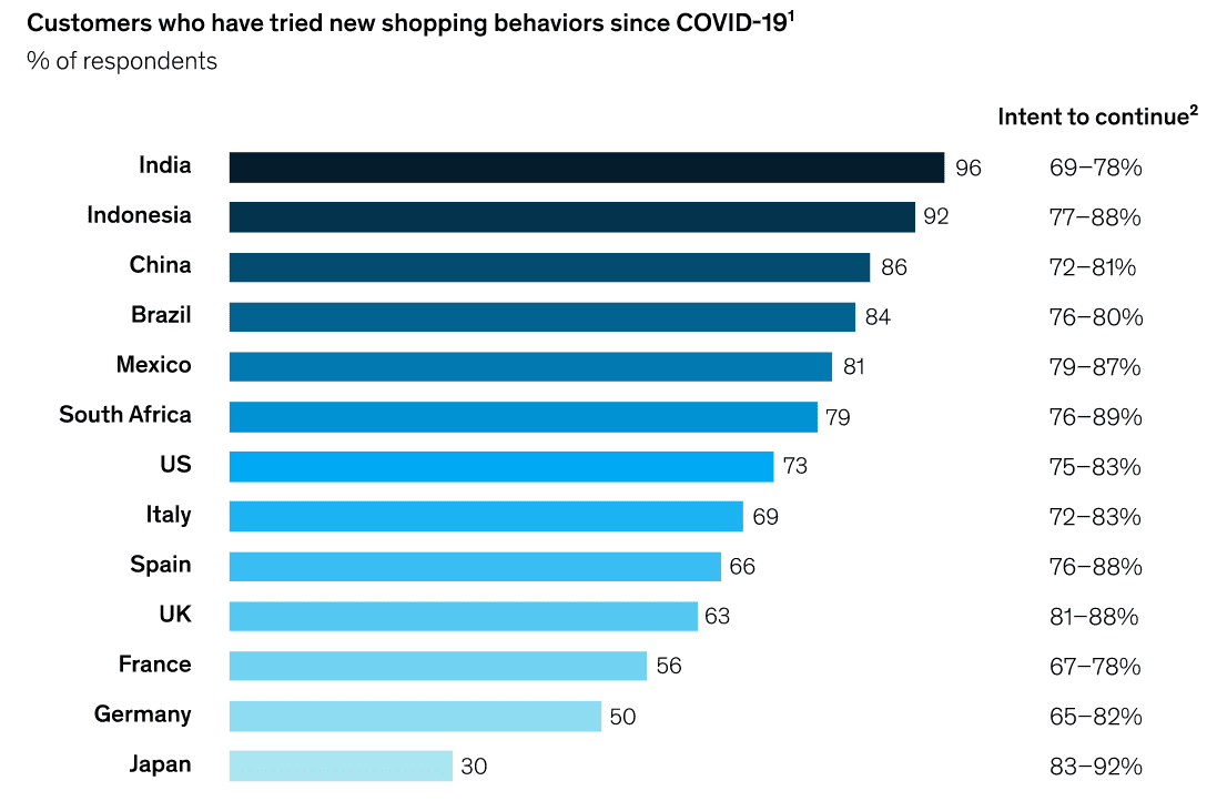 El Covid-19 obligó a las empresas a comenzar a operar en línea e implementar una serie de herramientas y nuevas tecnologías (entrega a domicilio, chatbot, e-commerce, servicios bajo demanda, formas de pago sin contacto) que los consumidores no abandonarán con facilidad pasada la pandemia. Lo que antes se trataba de innovaciones auxiliares, vistas como algo más que agregar a la estrategia digital propia, en la nueva normalidad serán herramientas necesarias para satisfacer las expectativas del consumidor.