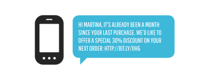Además, nada difunde las ofertas flash o por tiempo limitado mejor que un SMS: los cupones y las llamadas ventas flash requieren velocidad de entrega y apertura inmediata. Es fácil comprender cómo la textualidad de SMS es más efectiva que cualquier otro canal para guiar a los clientes a la tienda en línea o más cercana.